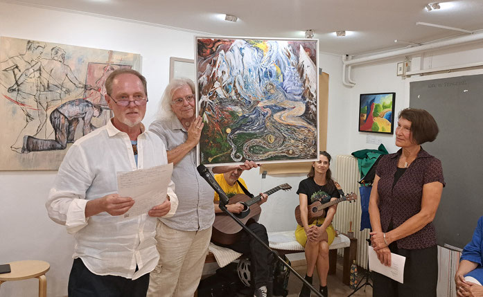 teilnehmende KünstlerInnen: Christine Kipper / Monika Riedel-Brandl / Peter Brandstätter / Ursula Meister / Anna Maria Körbisch / Gina Harg / Judith Frewein / Heinz Reicher / Lisa Lovepeace; Musik: Holly Brigg / Horst Lichtenegger; LiteratInnen: Holly Brigg / Anton Christian Glatz / Duanna Mund; Galeristin Nicole Reicher;